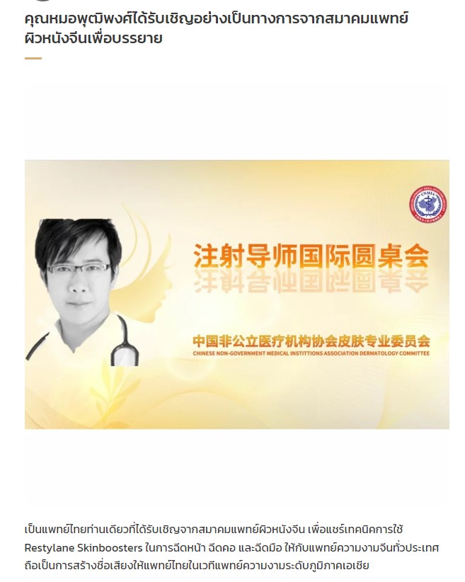 ในด้านการร้อยไหมคุณหมอได้รับฉายาว่าเป็นแพทย์ต้นแบบการร้อยไหมละลายเกาหลี เนื่องจากเป็นผู้นำเทคนิคการร้อยไหมเกาหลีมาเผยแพร่ในเมืองไทยเป็นครั้งแรก จนได้รับประกาศเกียรติคุณชื่นชมจากหน่วยงานรัฐบาลกลางเกาหลีเมื่อปี 2013