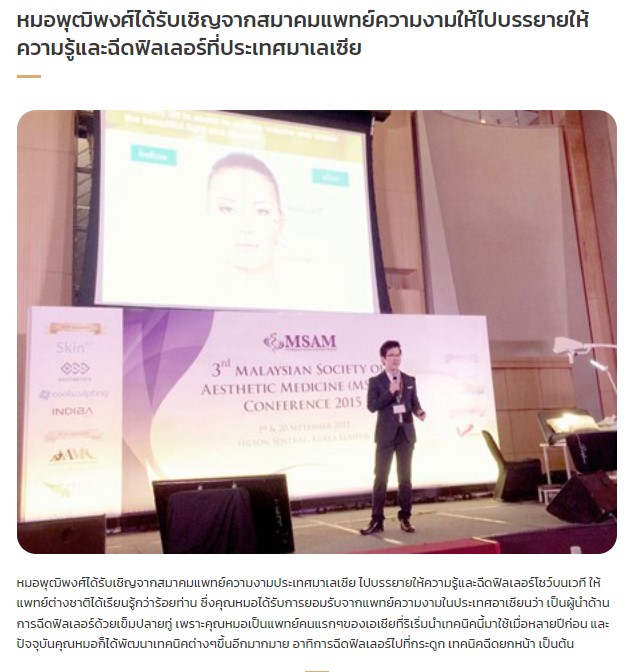 นอกจากงานดูแลลูกค้า VIP ที่ AIC Clinic ปัจจุบันคุณหมอยังมีงานสอนแพทย์ด้านการฉีดฟิลเลอร์ และงานบรรยายเรื่องฟิลเลอร์ทั้งในไทยและต่างประเทศอย่างสม่ำเสมอ นอกจากนี้ยังรับผิดชอบในการฝึกอบรมแพทย์รุ่นน้องที่จะเข้ามาเป็นแพทย์วิทยากรผู้สอนฟิลเลอร์รุ่นใหม่ๆด้วย