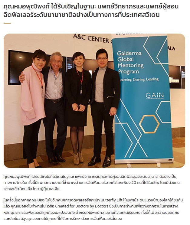 คุณหมอพุฒิพงศ์เป็น KOL ด้านฟิลเลอร์ในระดับเอเชีย ปัจจุบันมีตำแหน่ง CMT (Country Mentor Trainer) หรือแพทย์ผู้สอนฉีดฟิลเลอร์ในระดับสูงสุดเพียงคนเดียว ในเขตเอเชียตะวันออกเฉียงใต้ นอกจากจะมีผลงานการสอนมากมายทั้งในประเทศและต่างประเทศ อาทิ ณี่ปุ่น เกาหลีใต้ จีน ใต้หวัน ฮ่องกง สิงคโปร์ มาเลเซีย และอินโดนิเซีย คุณหมอยังมีผลงานวิชาการเรื่องการฉีดฟิลเลอร์ปรับรูปหน้า Butterfly Lift ที่โด่งดังในต่างประเทศ จนได้รับการตีพิมพ์เป็นตำราแพทย์ที่ประเทศสวิสเซอร์แลนด์ และเผยแพร่ไปทั่วโลก