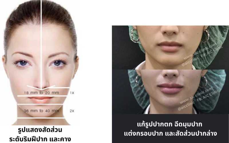 จะเห็นว่า…ริมฝีปากของเรามีความสัมพันธ์กับรูปใบหน้าส่วนอื่นๆ หรือไม่ โดยเฉพาะมุมปากและคาง ดังนั้นการแก้ไขริมฝีปากเพียงอย่างเดียว ไม่ว่าจะด้วยการฉีดฟิลเลอร์ HA หรือผ่าตัดริมฝีปากก็ตาม ก็จะไม่ได้ทำให้ใบหน้าของเราดูสวยสมบูรณ์ หรือดูอ่อนเยาว์ได้ หากไม่ได้ปรับรับแก้มุมปากและคางควบคู่กันไปด้วย